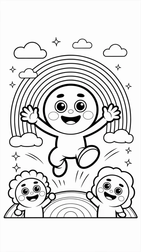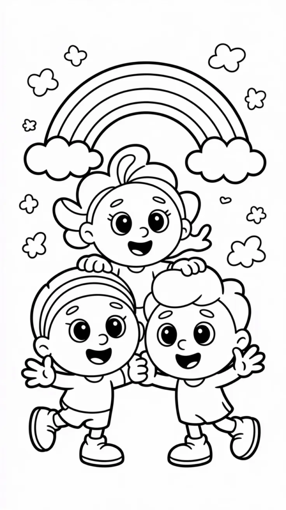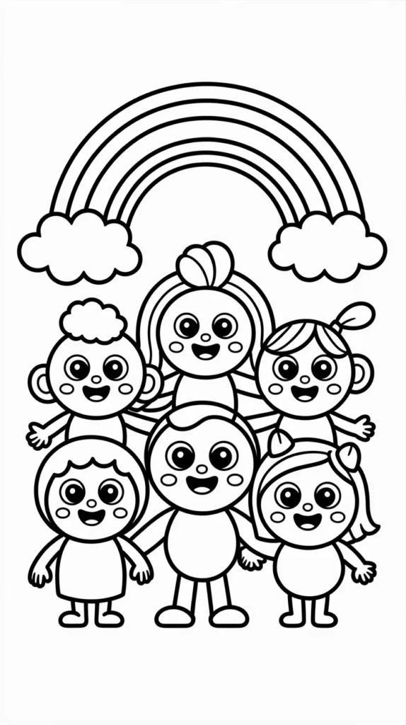9. Adorable Rainbow Friends Coloring Page for Kids