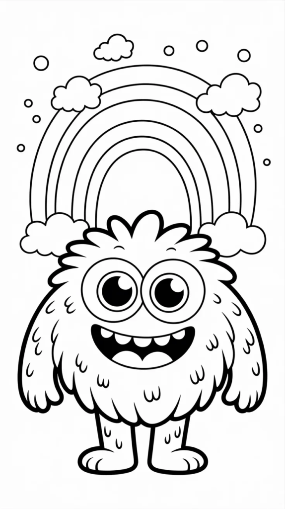 Kids love funny characters, and this coloring page features a playful Rainbow Friends monster with a silly expression. It’s a great way to encourage laughter and creativity while coloring.